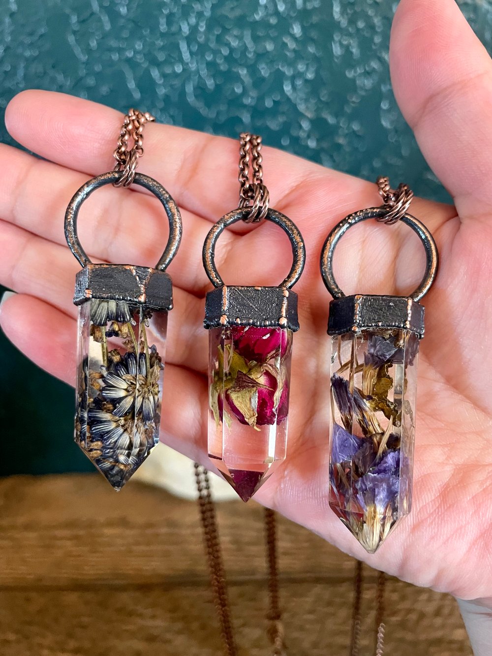 Pendant measures approximately 2.5 inches and hangs on a 22 inch copper plated chain.