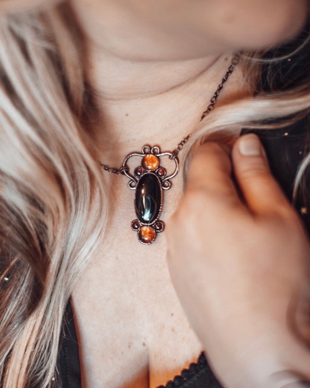 Onyx and Amber Pendant